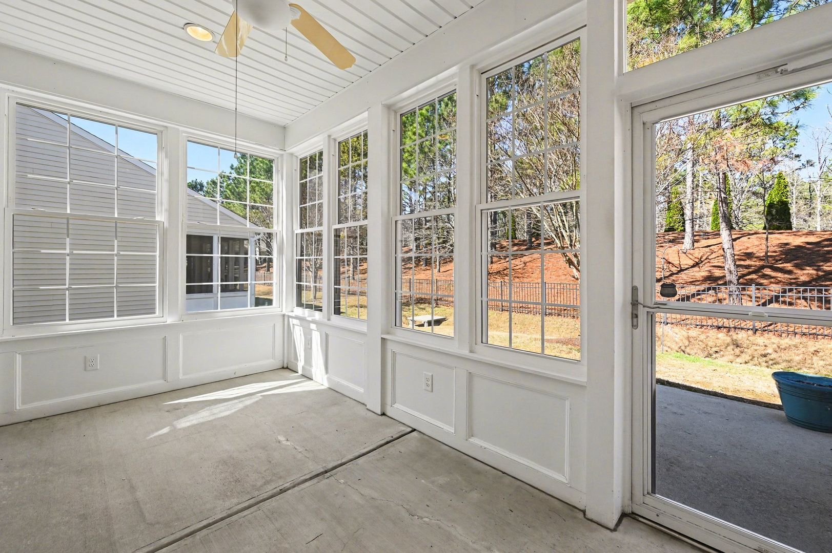 Immaculate and move-in ready home in the sought-after 55+ community of Carolina Preserve in Cary. This three-bedroom, two-bath, one level home offers comfortable living with easy access to community amenities including a fitness center, indoor and outdoor swimming pools, clubhouse with events, hiking and biking trails, tennis, bocce and pickleball courts. Freshly painted interior features hardwood flooring in living areas and tile in kitchen and bathrooms. The kitchen offers granite counters, stainless steal appliances with a gas range, a breakfast area and built-in desk space. Primary suite with a large bathroom and walk-in shower and closet. The three season room is a special feature where you can enjoy private backyard views. Residents can benefit from an active lifestyle but skip lawn maintenance!